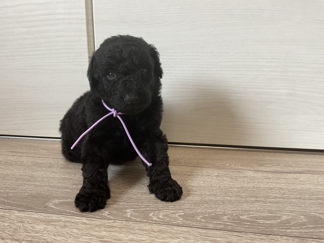 黒のスタンプーをお譲り頂きました。初めて伺った見学時は近くの港までお迎えに来ていただき、引き取りの際は飛行機の時間が迫っていたので港まで子犬を連れてきて頂いたりと、とても有難かったです。見学時には兄弟わんこや親戚わんこもゆっくり見せて頂けたので、安心して子犬を迎えることができました。本当に信頼できるブリーダーさんです。将来グレーになると伺ったので名前は「銀」にしました。もうすっかり甘えん坊の可愛い家族です。大切に育てます。(鹿児島県 女性)