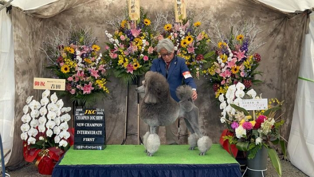 黒のスタンプーをお譲り頂きました。初めて伺った見学時は近くの港までお迎えに来ていただき、引き取りの際は飛行機の時間が迫っていたので港まで子犬を連れてきて頂いたりと、とても有難かったです。見学時には兄弟わんこや親戚わんこもゆっくり見せて頂けたので、安心して子犬を迎えることができました。本当に信頼できるブリーダーさんです。将来グレーになると伺ったので名前は「銀」にしました。もうすっかり甘えん坊の可愛い家族です。大切に育てます。(鹿児島県 女性)