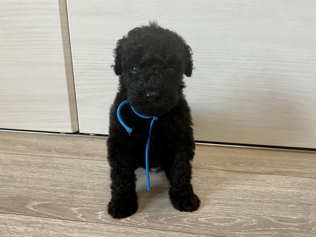 黒のスタンプーをお譲り頂きました。初めて伺った見学時は近くの港までお迎えに来ていただき、引き取りの際は飛行機の時間が迫っていたので港まで子犬を連れてきて頂いたりと、とても有難かったです。見学時には兄弟わんこや親戚わんこもゆっくり見せて頂けたので、安心して子犬を迎えることができました。本当に信頼できるブリーダーさんです。将来グレーになると伺ったので名前は「銀」にしました。もうすっかり甘えん坊の可愛い家族です。大切に育てます。(鹿児島県 女性)